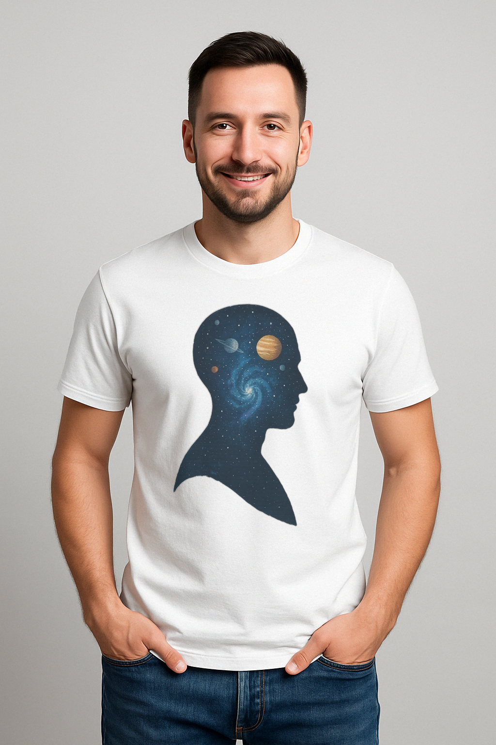 Ця футболка стане ідеальним доповненням гардеробу сучасного та впевненого у собі чоловіка. Вона переносить послання про велич і нескінченність Всесвіту, акцентуючи на глибині вашого внутрішнього світу. Чоловіча футболка “Всесвіт всередині” — для тих, хто не боїться визнавати свою індивідуальність.
