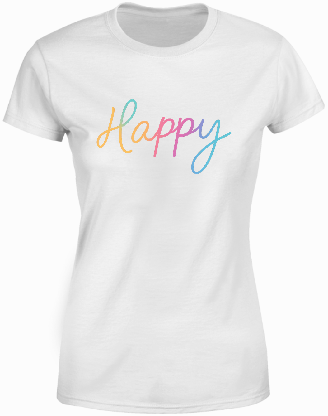 2. Стильний принт “Happy” на грудях додає футболці веселої нотки та допомагає створити позитивний образ.