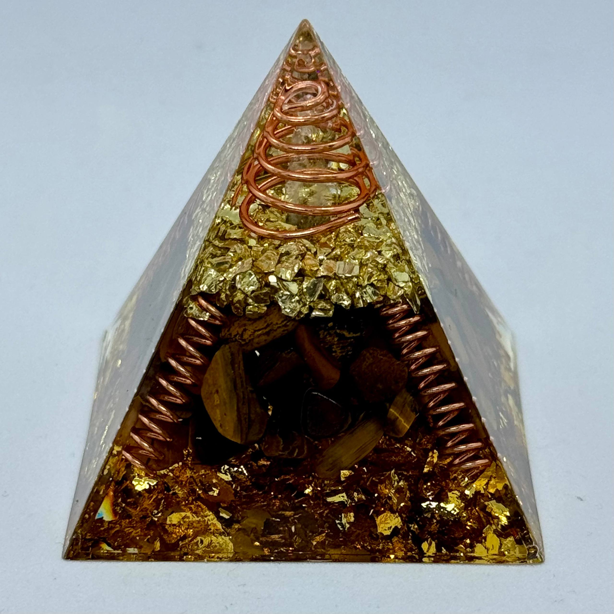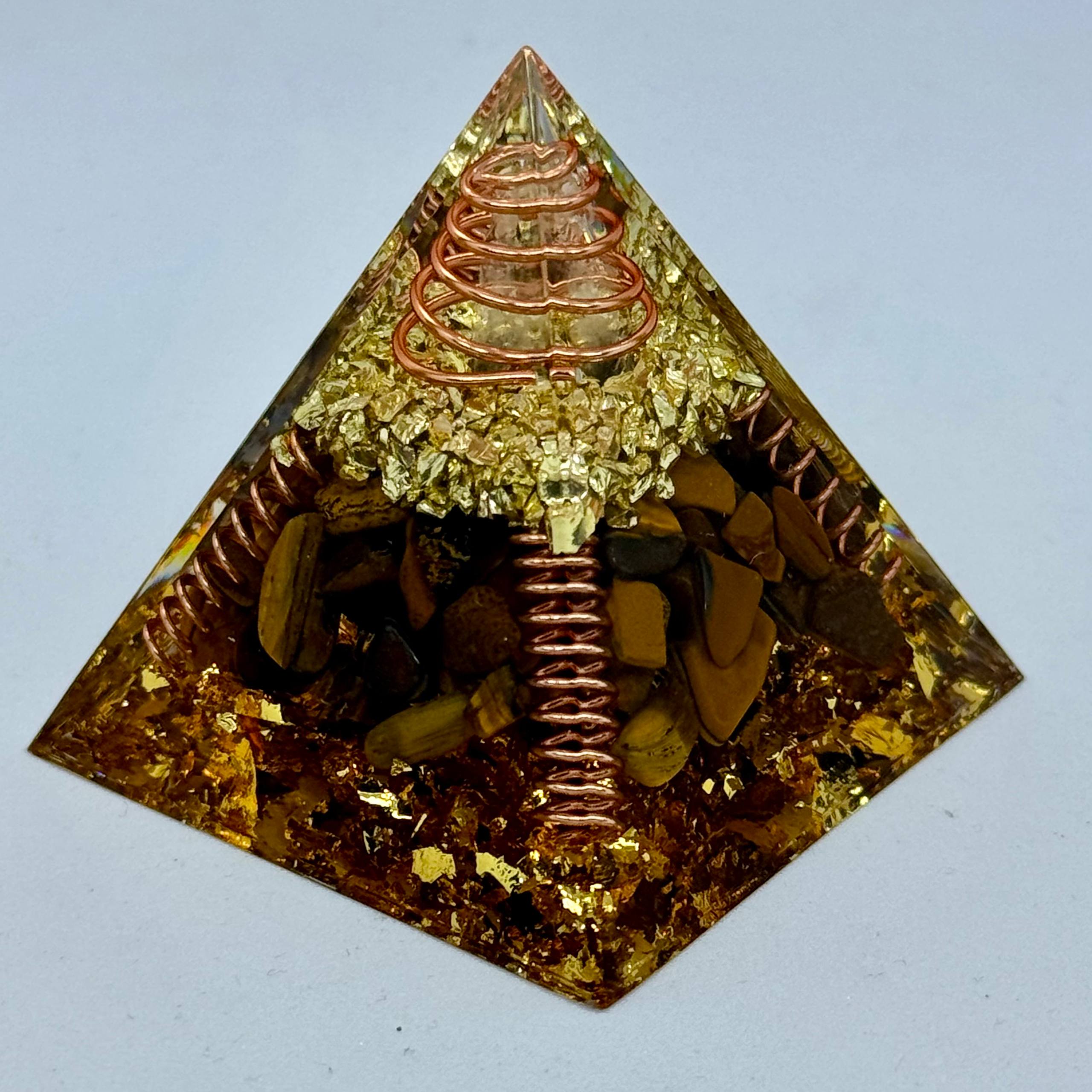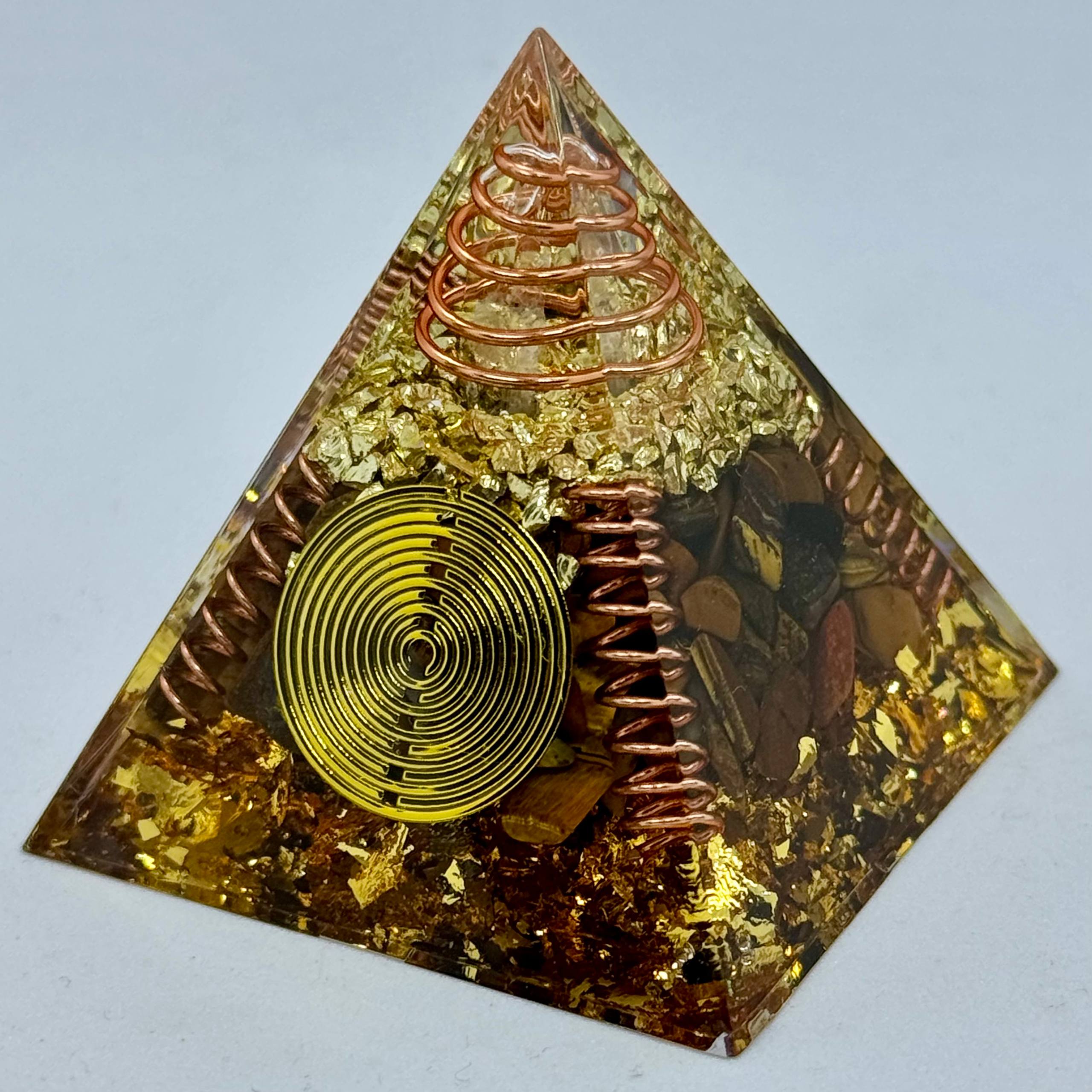 Піраміда Сонячного Потоку — це потужний енергетичний артефакт нового покоління, створений за принципом органітової трансформації. Вона поєднує в собі кристалічну свідомість Землі, мідну спіральну геометрію та золоте сяйво Сонця, що вібрує на частотах гармонії, стабільності та особистої сили.